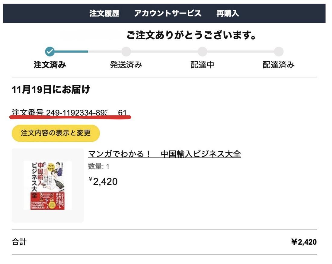 Amazonの注文履歴ページから確認できます。「アカウントサービス → 注文履歴 → 該当注文 → 注文番号をコピー」をして、特典申請フォームに入力してください。