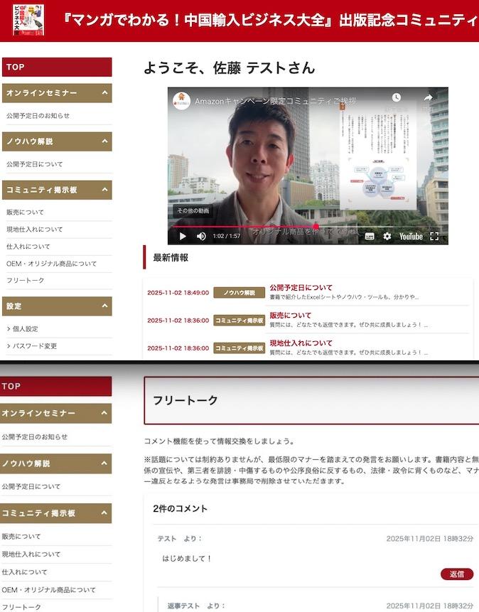 中国輸入ビジネスに関するマル秘情報を共有したり、質問をしたりできる、